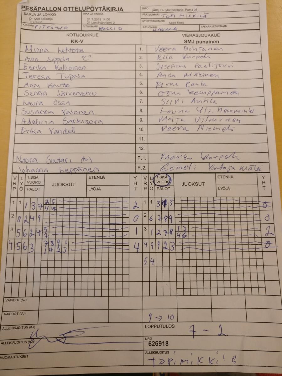 | V) C9-D9 | 21.7.2018 15:00 | 21 Lentävänniemi 2 | LMV | PuPe | SMJ punainen |