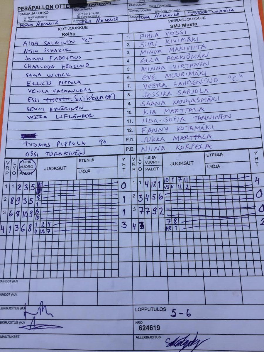 | H1-G2 | 21.7.2018 13:00 | 07 Sorsapuisto 2 | VePe | HP | SMJ Musta |