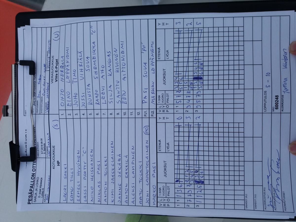 | 9.7.2018 08:30 | 5. Sarkola | HP | ViVe E-Pojat | 5-10 | näytä |