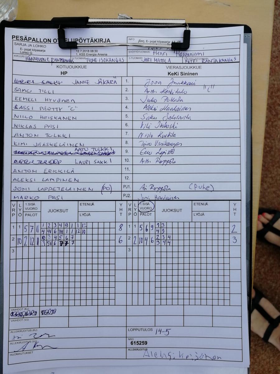 | Lohko E | 12.7.2018 09:30 | 1. KSS Energia Areena | AA -06 | KaMa E06 | HP |