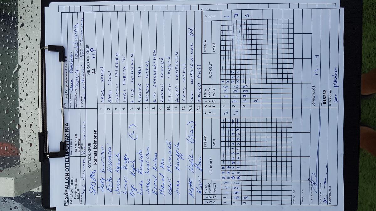 | Lohko H | 11.7.2018 09:30 | 3. Lehtomäki | KiPa-90 | JoMa07 | HP |
