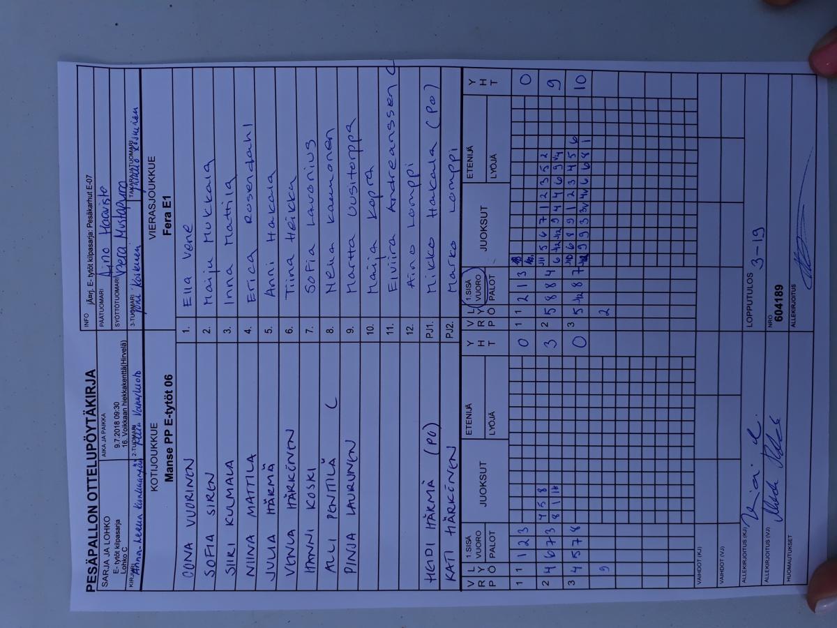 | Lohko E | 12.7.2018 14:00 | 14. Kuusankoski, PP-Stadion | PattU E06 -tytöt | HP Musta | Fera E1 |