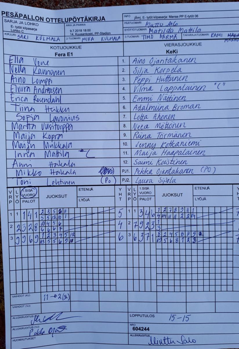 | Lohko E | 11.7.2018 09:30 | 13. Kuusankoski, PP-Stadion | HP Musta | TyTe Keltaiset | Fera E1 |