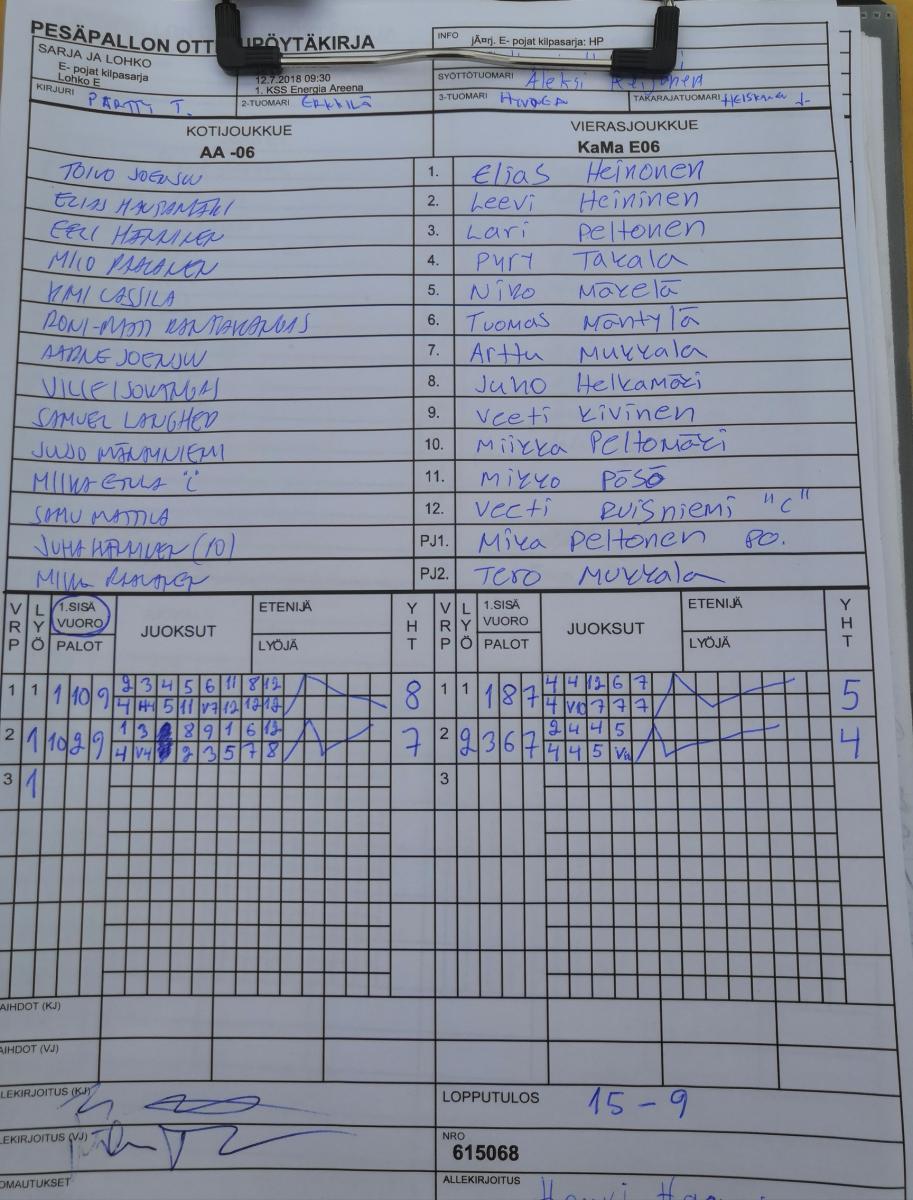| Lohko G | 12.7.2018 08:30 | 1. KSS Energia Areena | HP | KeKi Sininen | AA -06 |