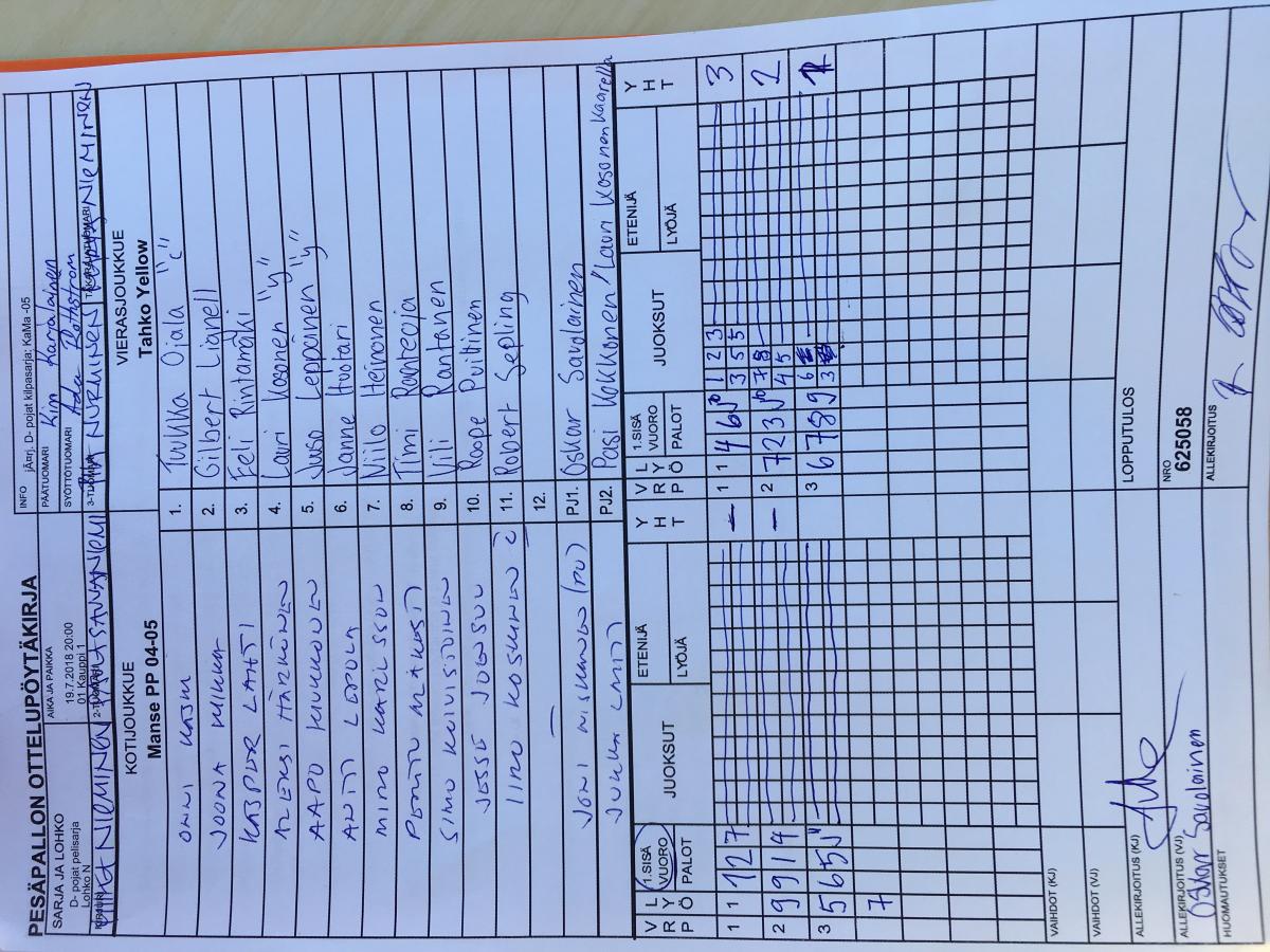 | D- pojat pelisarja - Lohko D | 18.7.2018 20:00 | 04 Kauppi 4 | SiKi | UP-V 05 | Tahko Yellow |