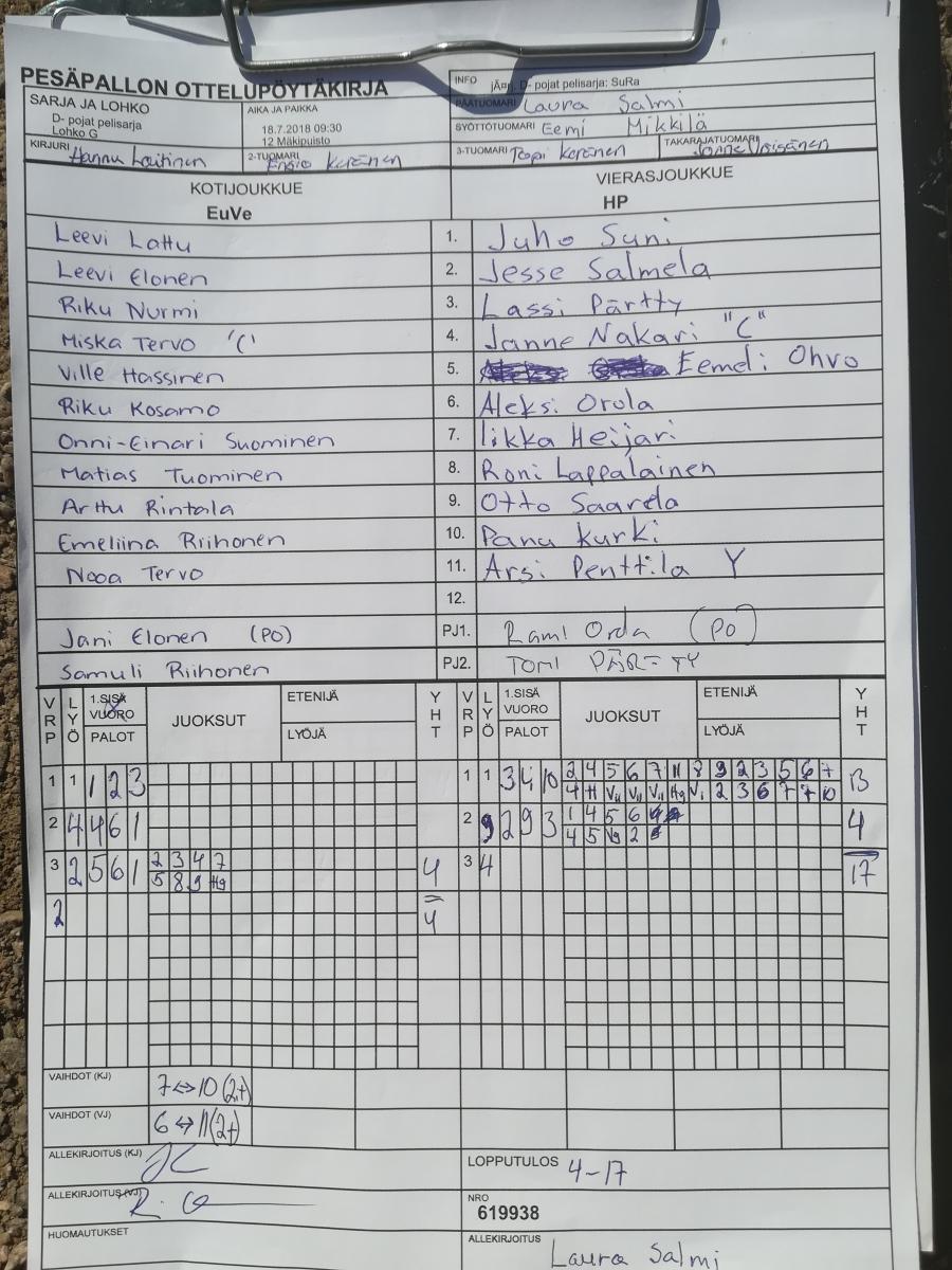 | 18.7.2018 09:30 | 12 Mäkipuisto | EuVe | HP | 4-17 | näytä |