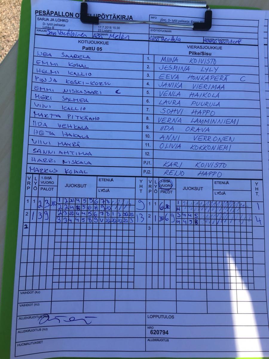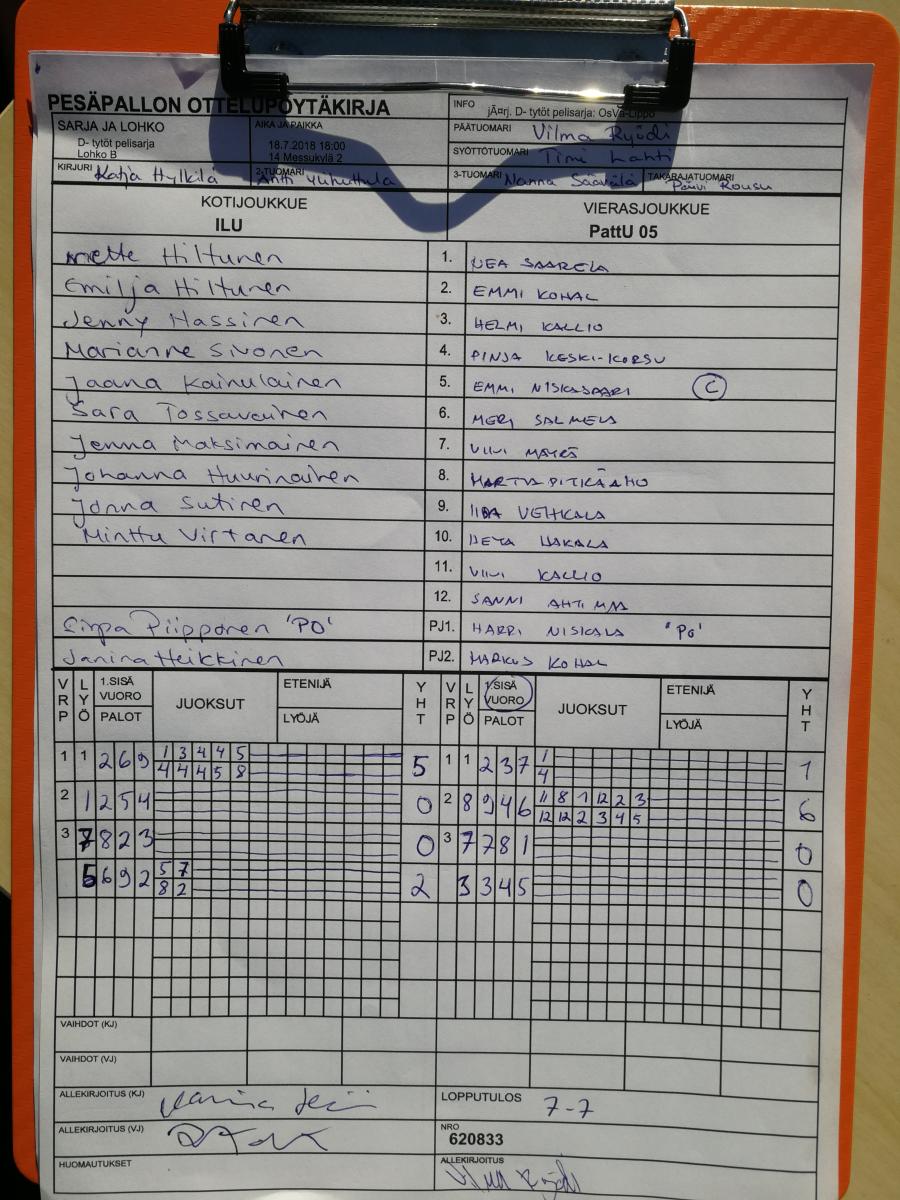 | T) D7-C8 | 21.7.2018 14:00 | 21 Lentävänniemi 2 | KK-V | SMJ punainen | PattU 05 |