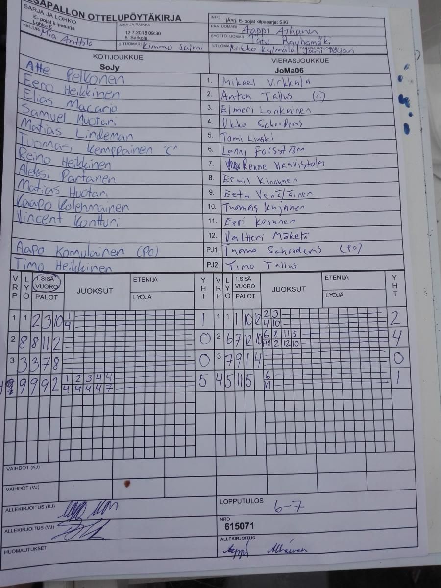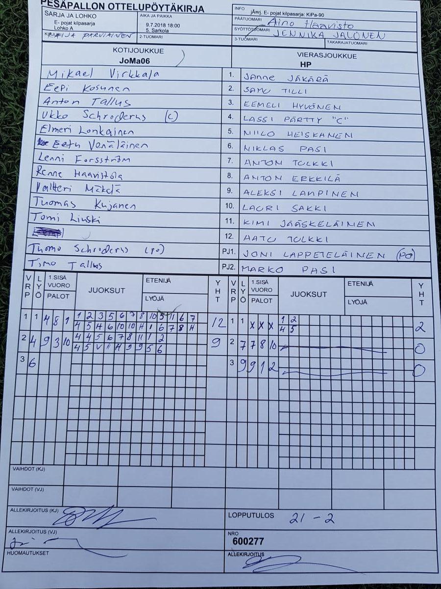| 9.7.2018 18:00 | 5. Sarkola | JoMa06 | HP | 21-2 | näytä |