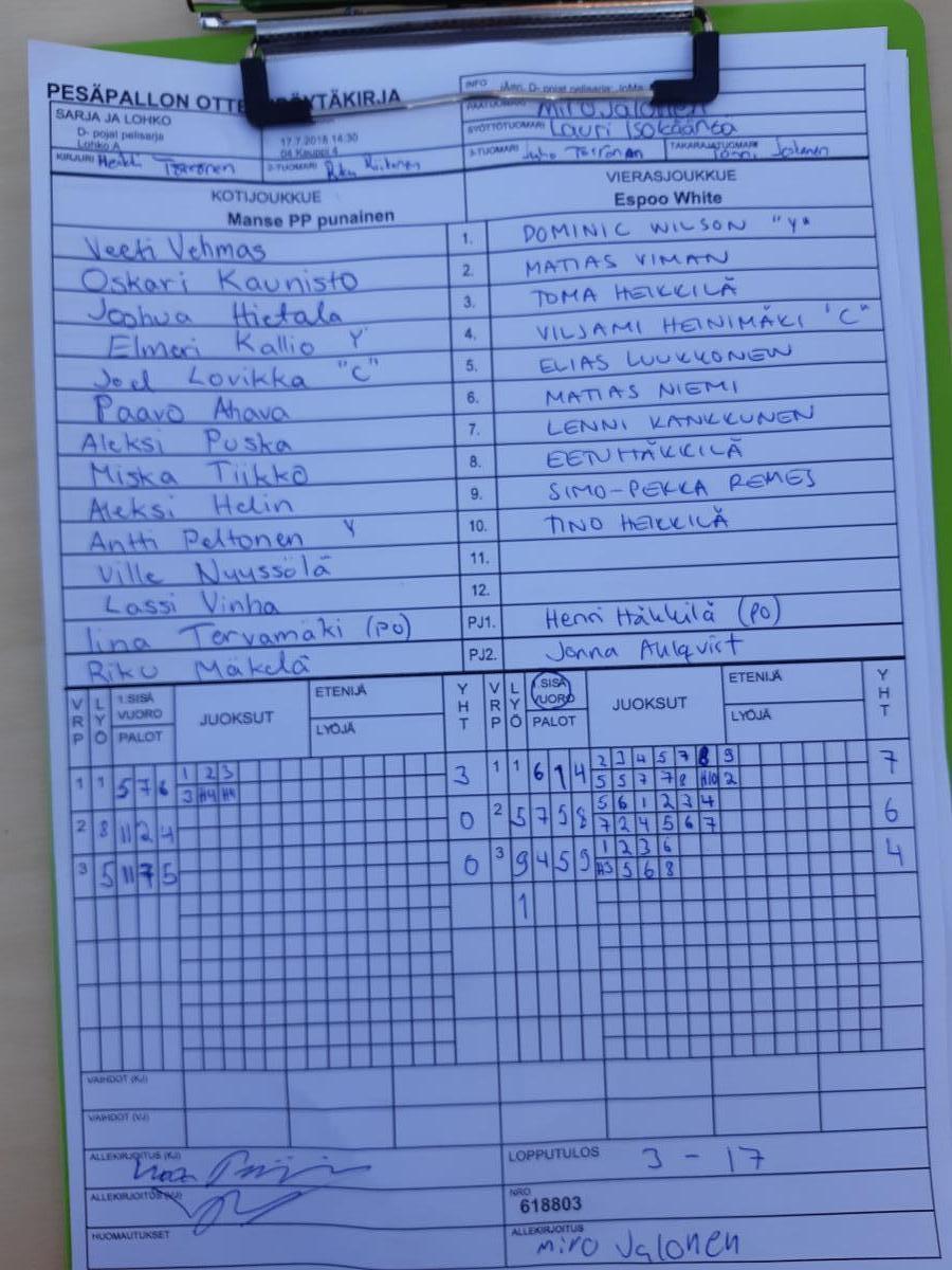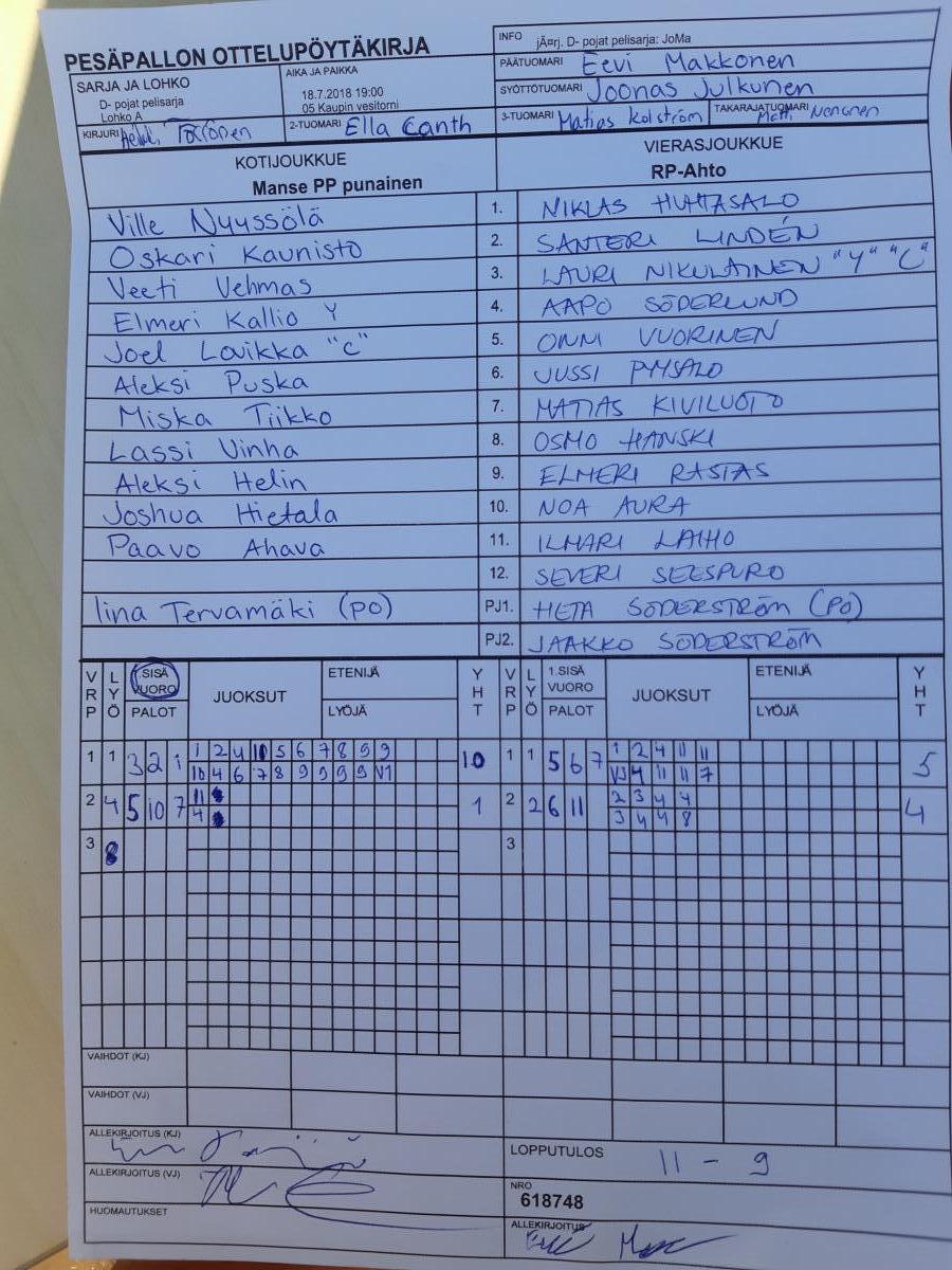 | 21.7.2018 14:00 | 17 Tipotie | Manse PP punainen | SoJy oranssi | 1-8 | näytä |