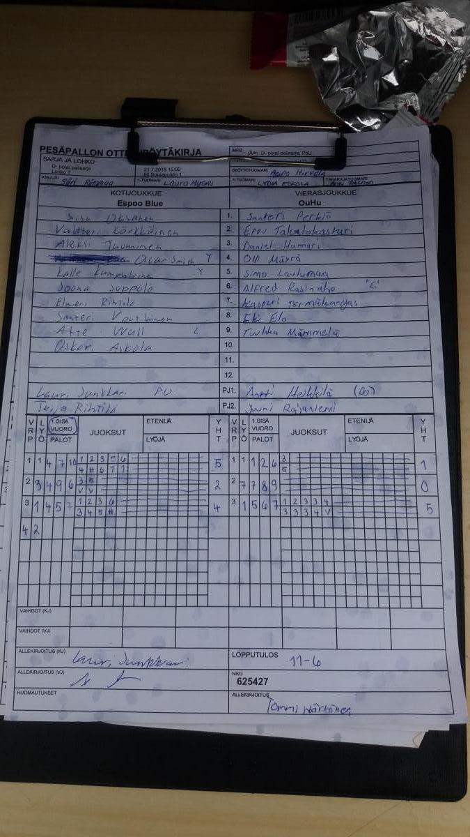 | Lohko K | 19.7.2018 14:00 | 06 Sorsapuisto 1 | SiKi | JoMa | Espoo Blue |