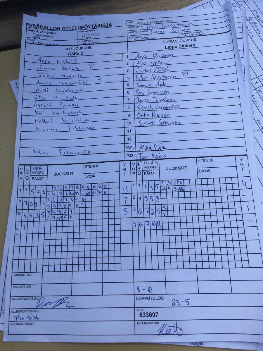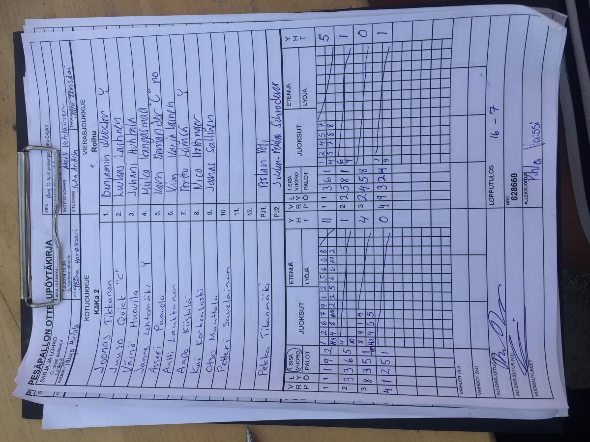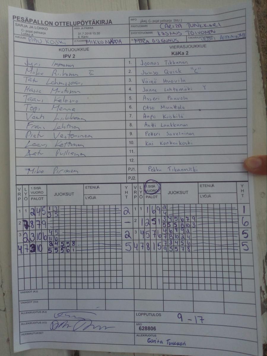 | A6-B6 | 3.8.2018 09:45 | 6. Kärki | IPV 2 | JoKo | KäKa 2 |