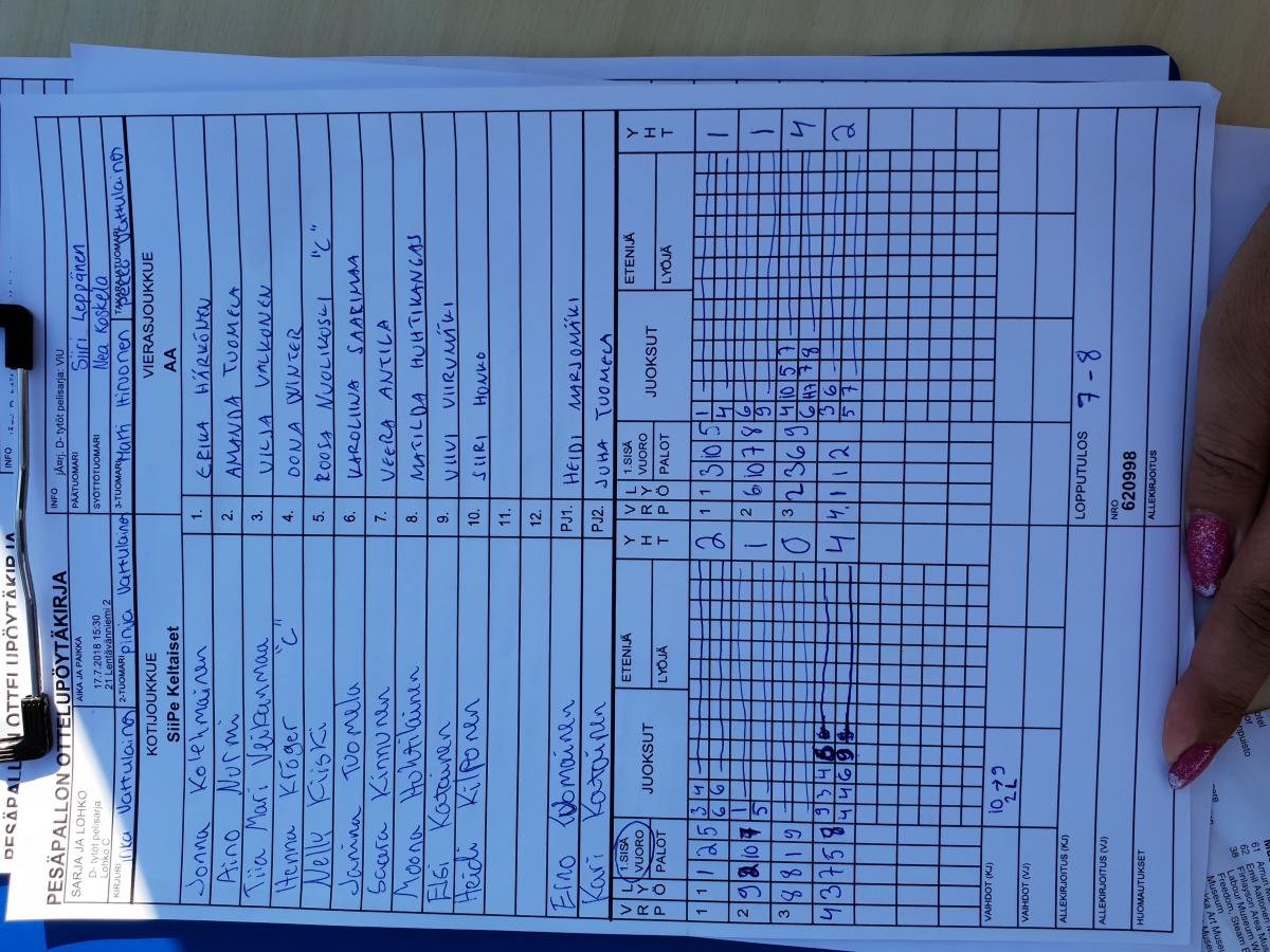 | 17.7.2018 15:30 | 21 Lentävänniemi 2 | SiiPe Keltaiset | AA | 7-8 | näytä |