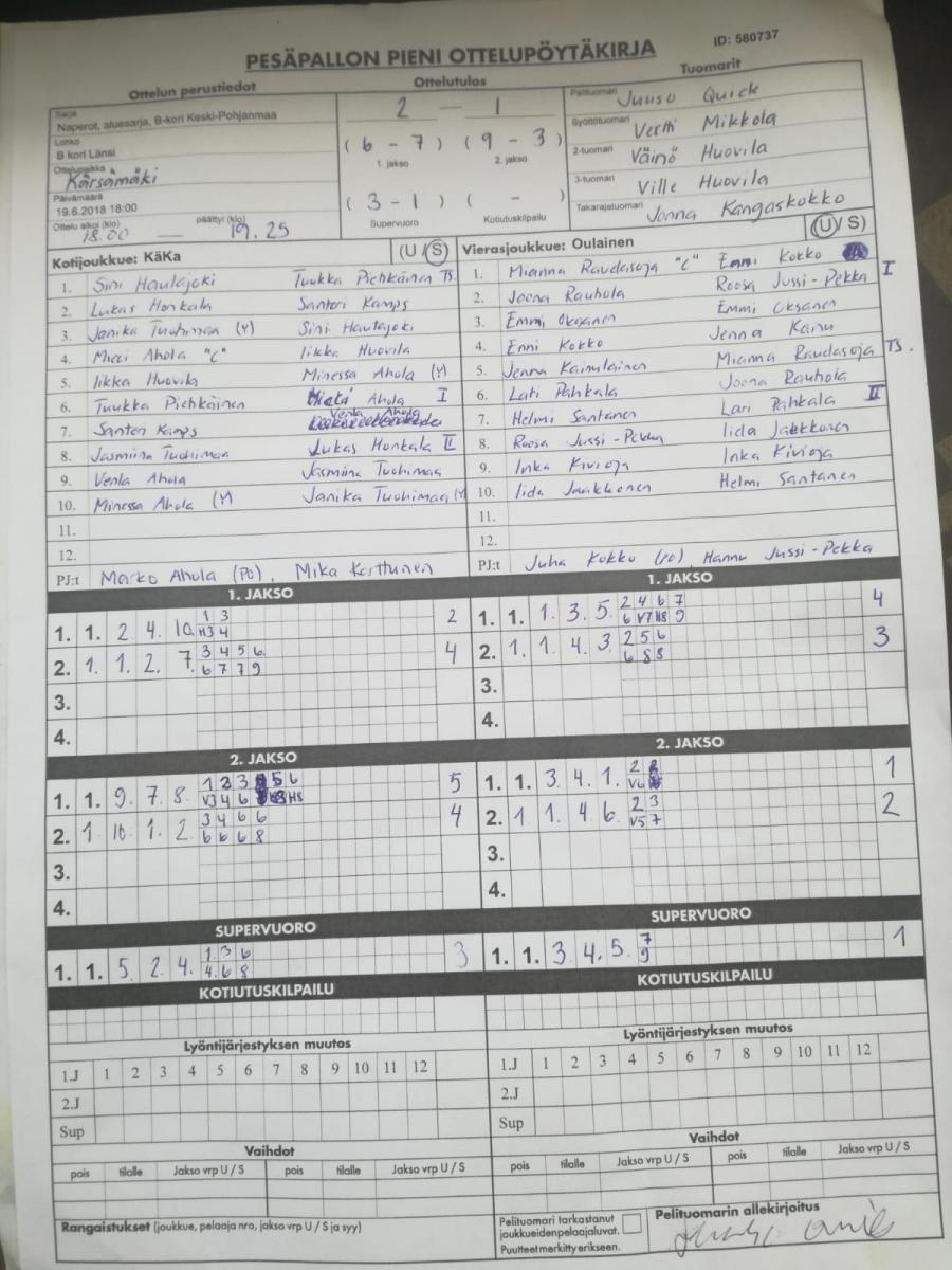| 19.6.2018 | KäKa | Oulainen | 2-1 (6-7, 9-3, 3-1) | näytä |