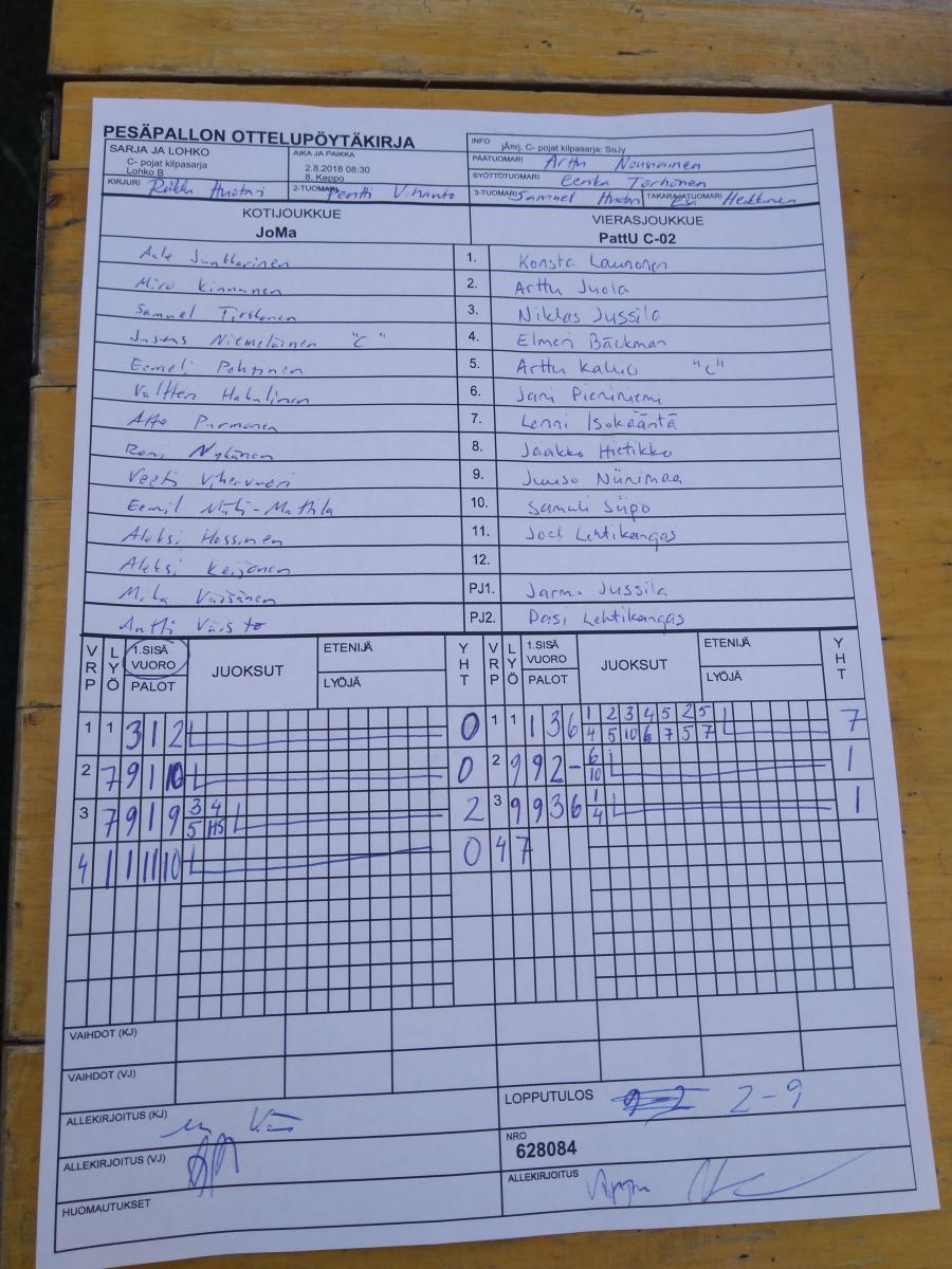 | C- pojat kilpasarja - Lohko B | 1.8.2018 17:15 | 15. Pisko-Areena | Kiri blue | JoMa | PattU C-02 |