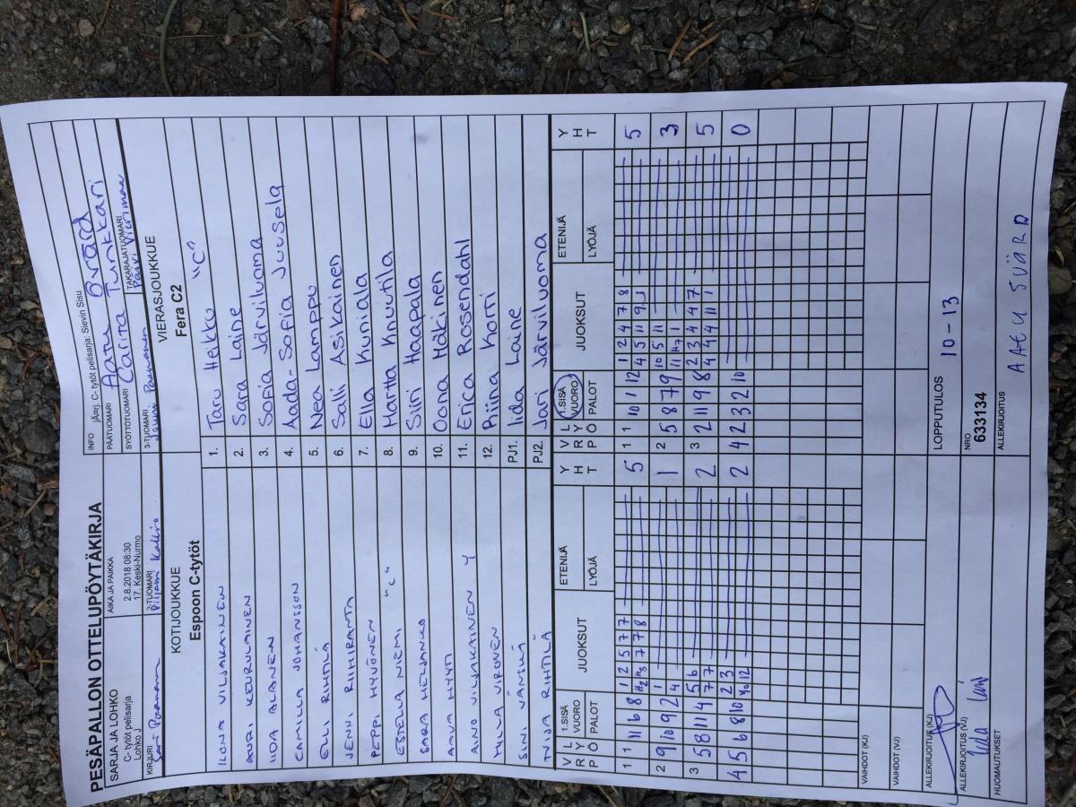 | 2.8.2018 08:30 | 17. Keski-Nurmo | Espoon C-tytöt | Fera C2 | 10-13 | näytä |