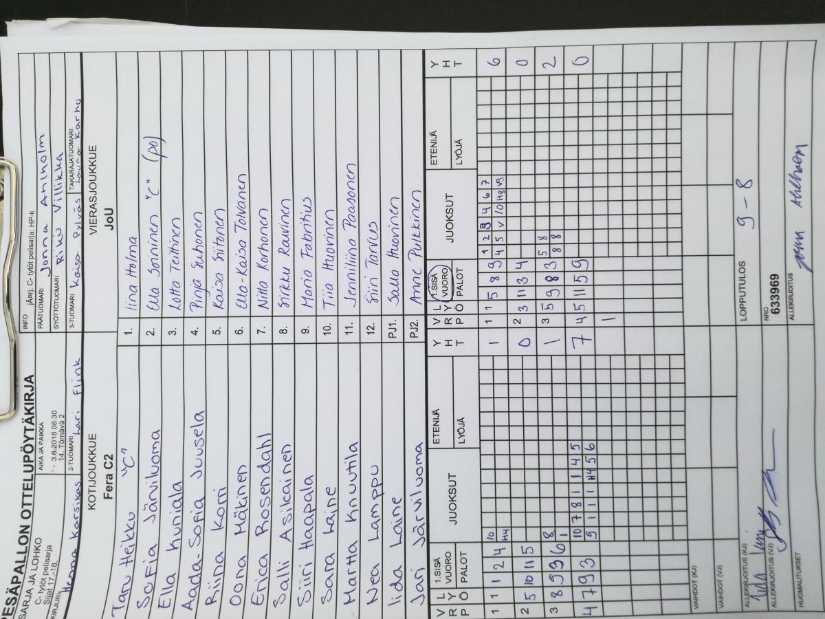 | 1.8.2018 13:00 | 1. Kotijoukkue Areena | Fera C2 | HP | 15-4 | näytä |