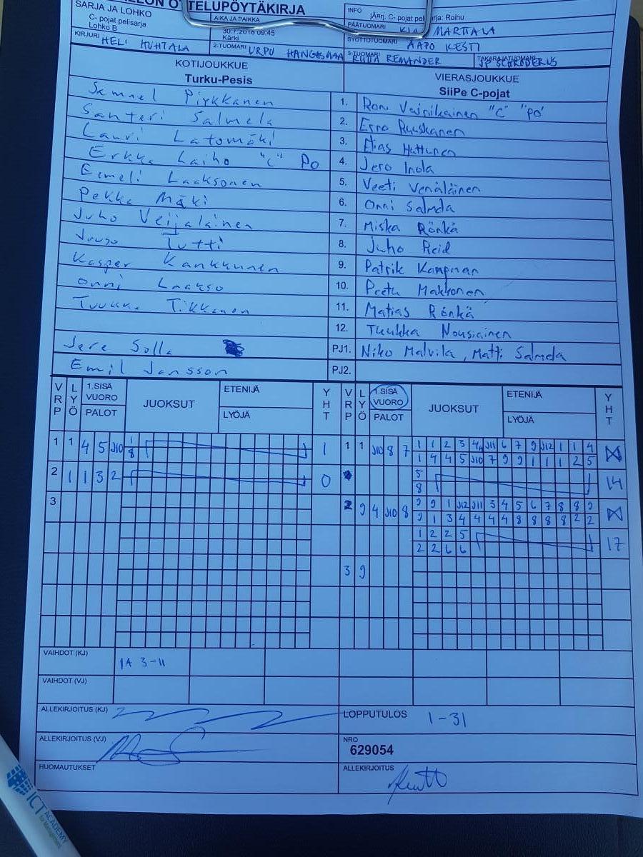 | Lohko C | 31.7.2018 17:15 | 16. Kivistö | Tahko C-tytöt | SMJ2 | Turku-Pesis |