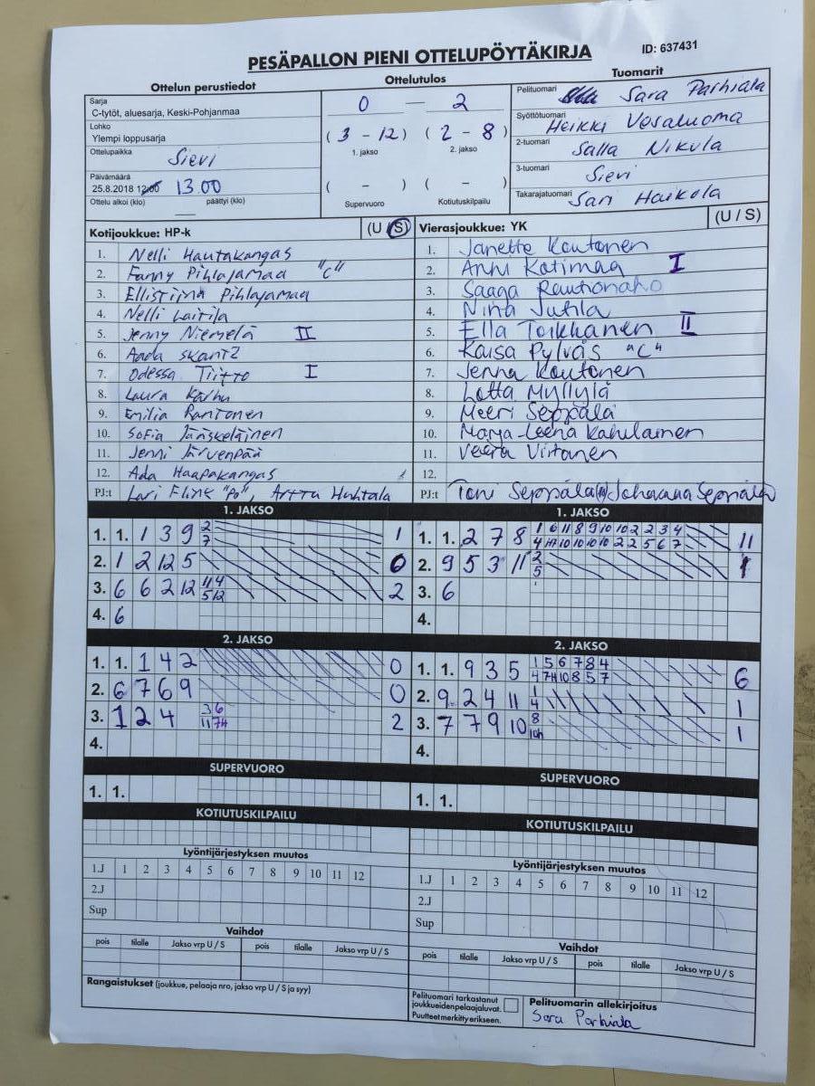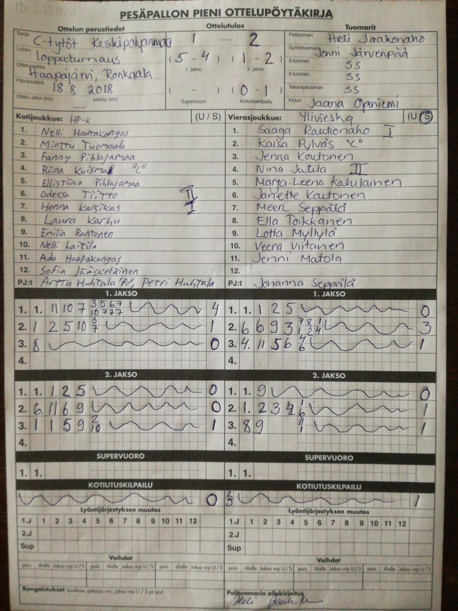 | 18.7.2018 | Toholammin Urheilijat | HP-k | 1-2 (5-7, 5-3, 0-1) | näytä | |