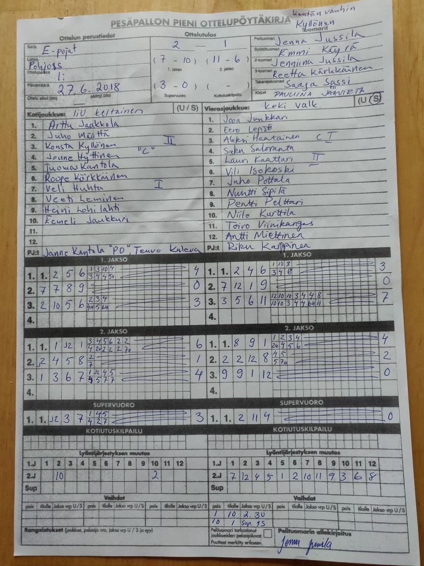 | 27.6.2018 | IiU E-pojat keltainen | Keki valkoinen | 2-1 (7-10, 11-6, 3-0) | näytä |