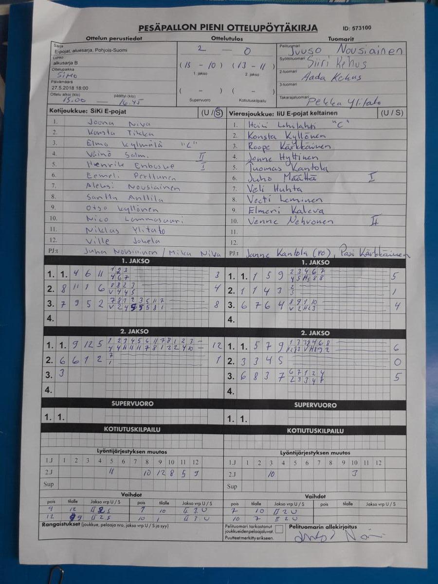 | 27.5.2018 | SiKi E-pojat | IiU E-pojat keltainen | 2-0 (15-10, 13-11) | näytä | |