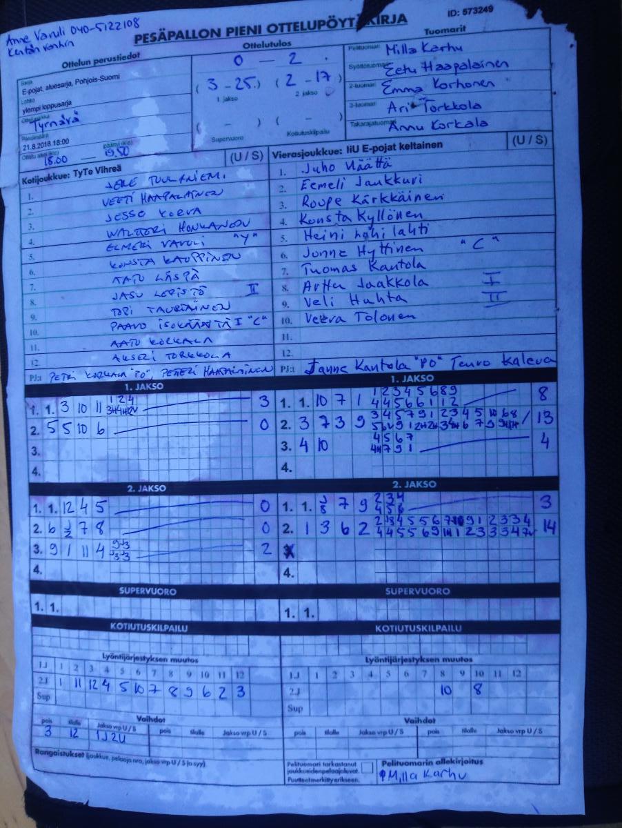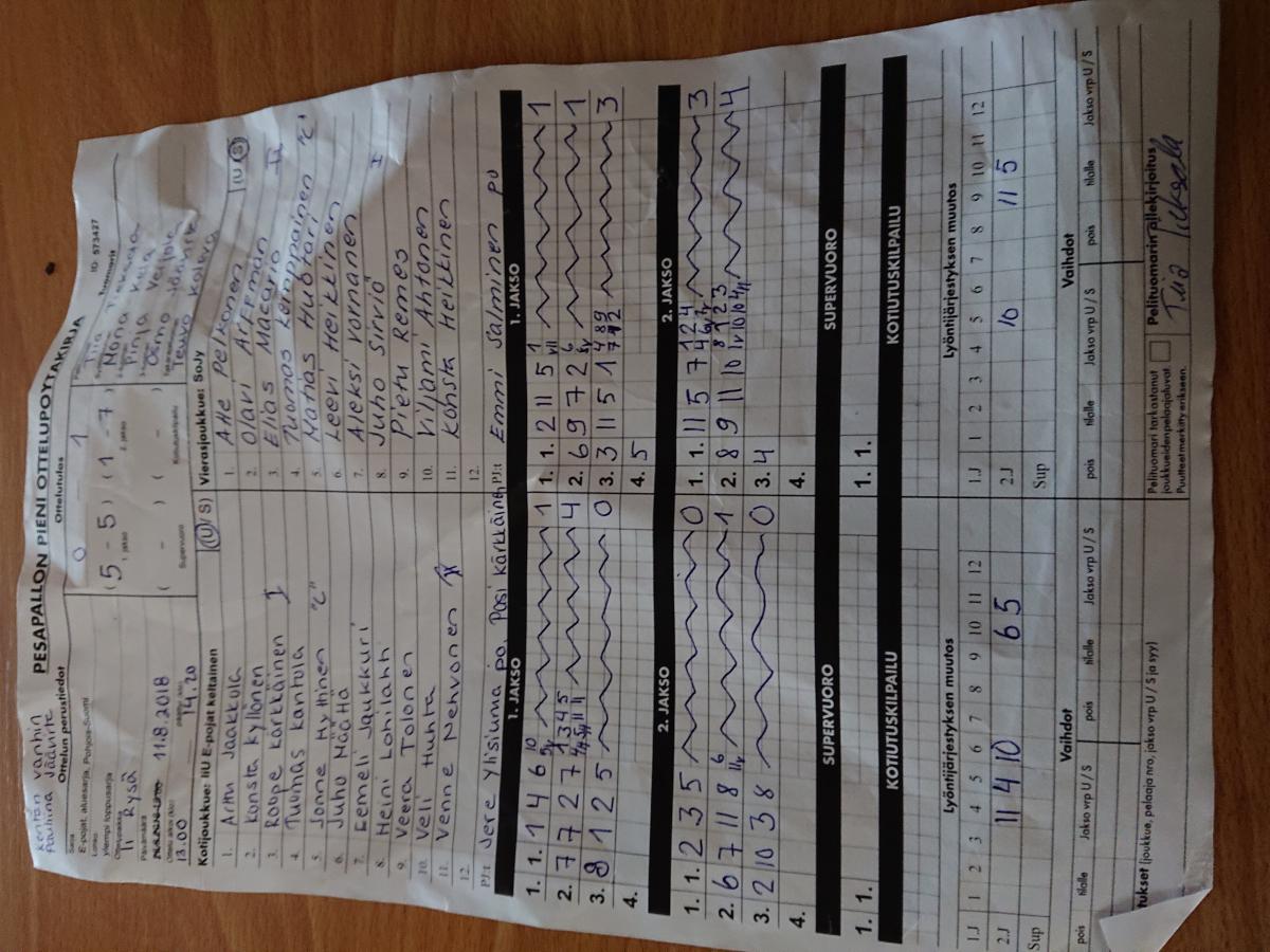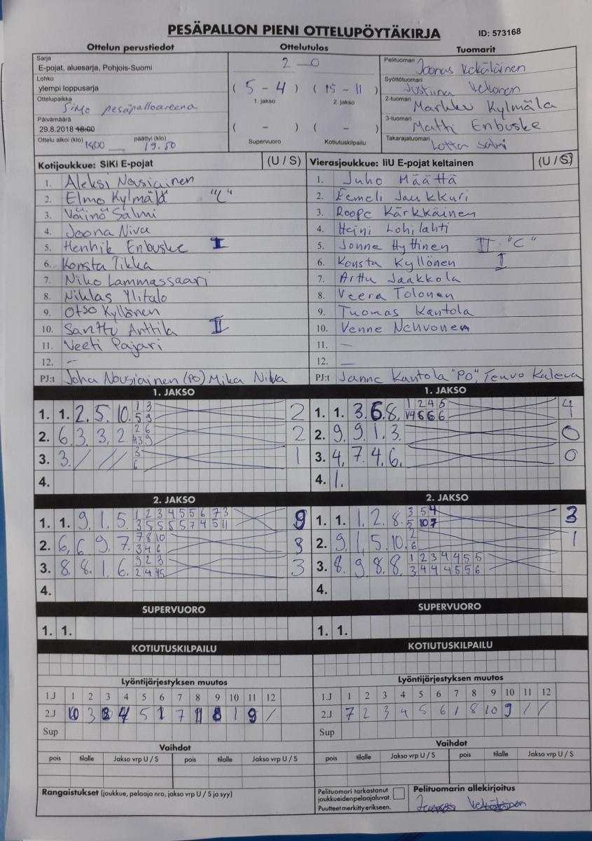 | 31.7.2018 | IiU E-pojat musta | IiU E-pojat keltainen | 1-2 (4-18, 11-5, 0-6) | näytä | |