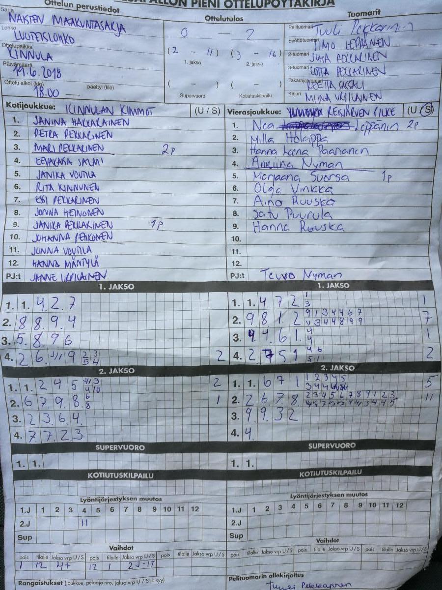 | 19.6.2018 | KiKi | RP | 0-2 (2-11, 3-16) | näytä | |