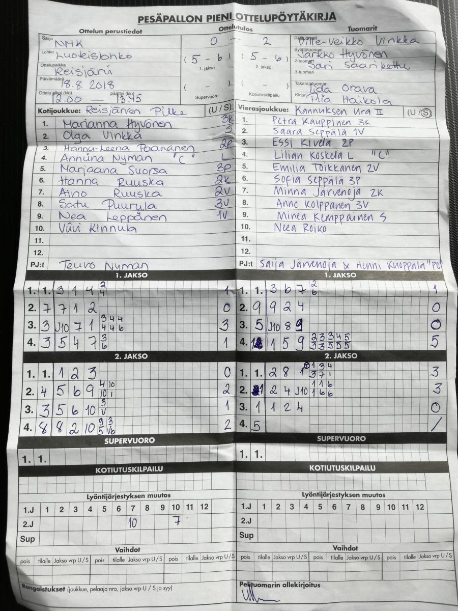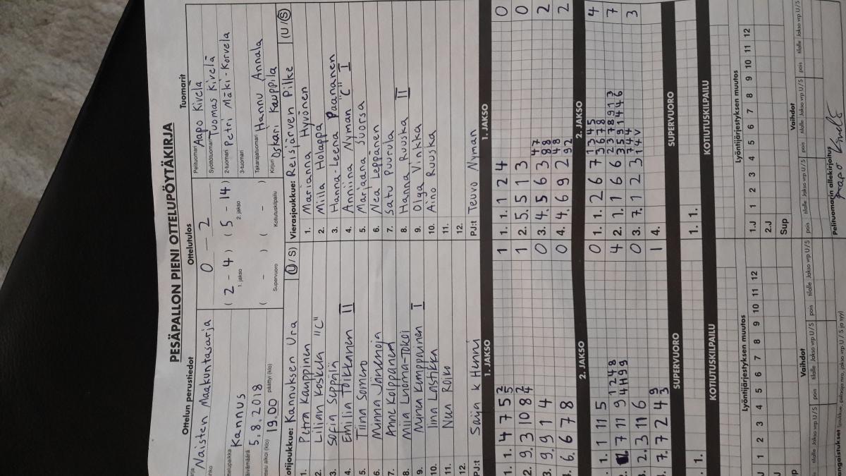 | 5.8.2018 | Kannuksen Ura 2 | RP | 0-2 (2-4, 5-14) | näytä | |