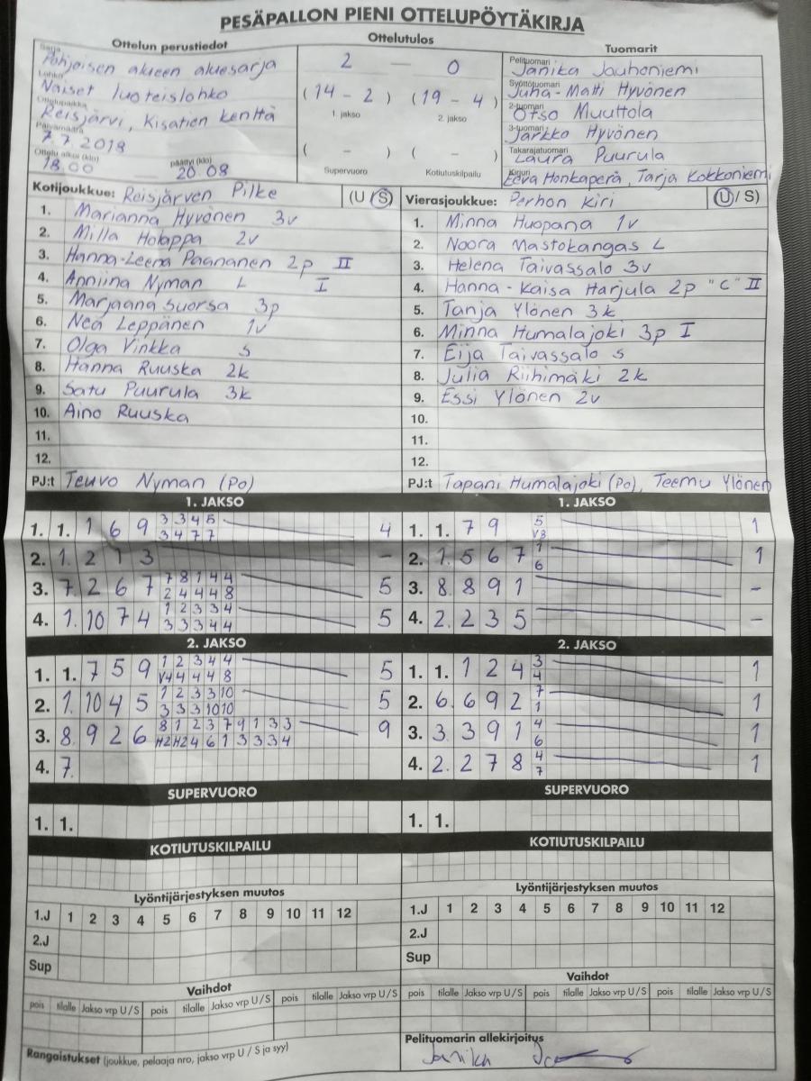 | 10.7.2018 | RP | NiPe | 2-0 (9-2, 7-3) | näytä | |