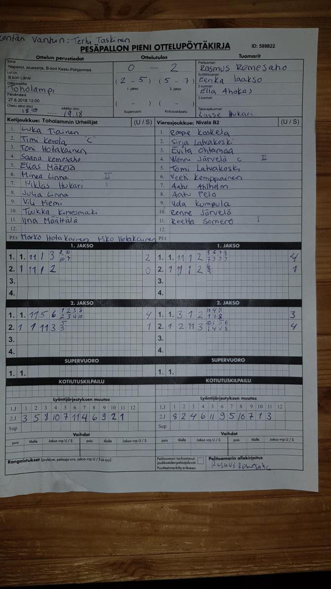 | 27.6.2018 | Toholammin Urheilijat | Nivala B2 | 0-2 (2-5, 5-7) | näytä |