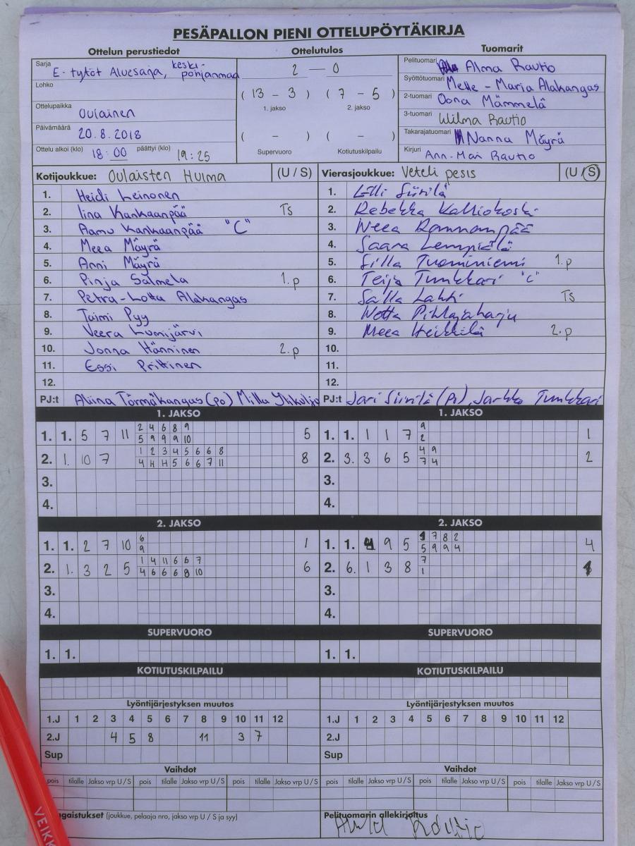 | 20.8.2018 | OuHu e-tytöt | VePe | 2-0 (13-3, 7-5) | näytä | |