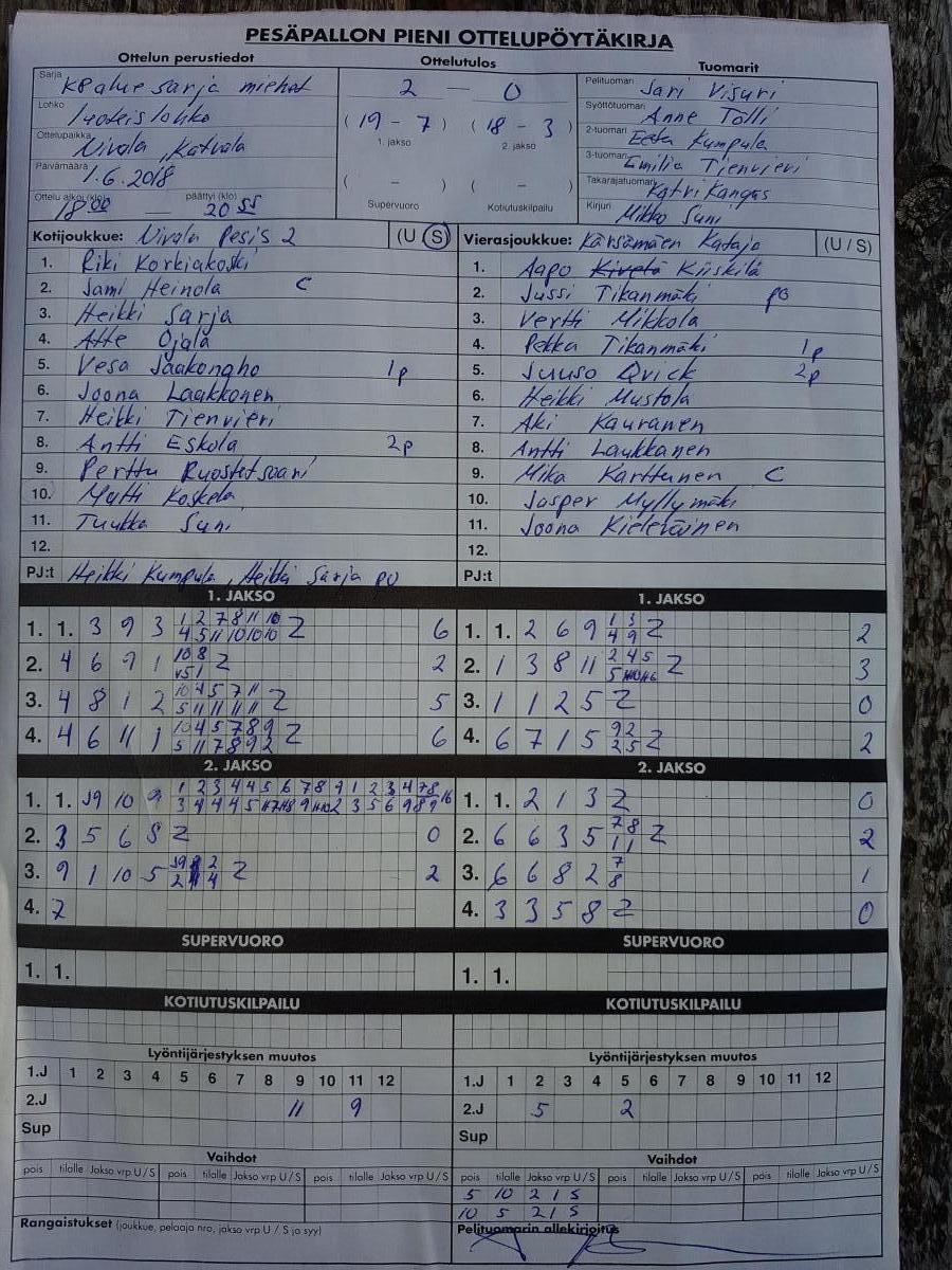 | 15.7.2018 | KäKa | NiPe 2 | 1-2 (8-13, 12-6, 0-1) | näytä | |