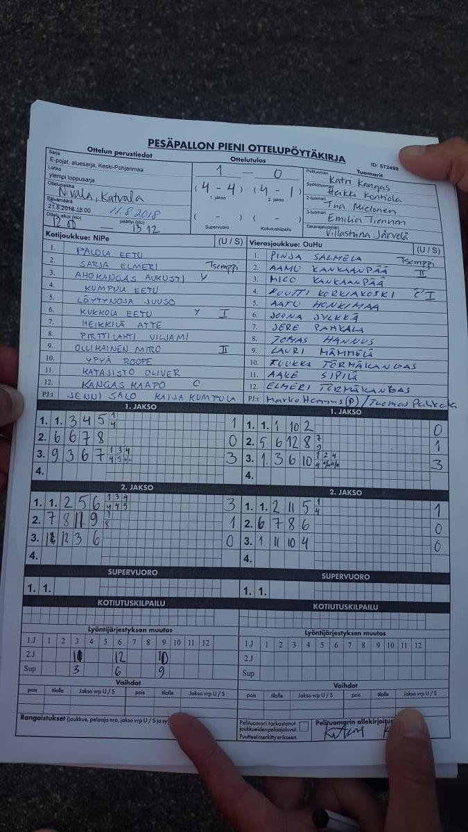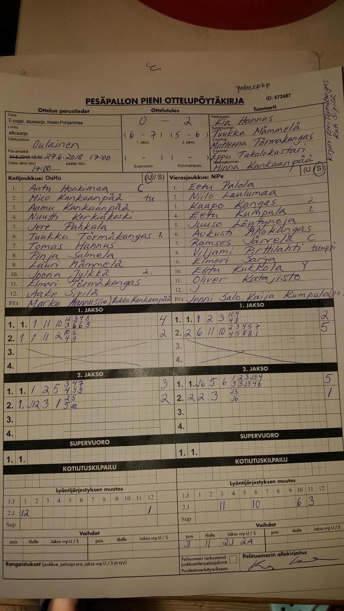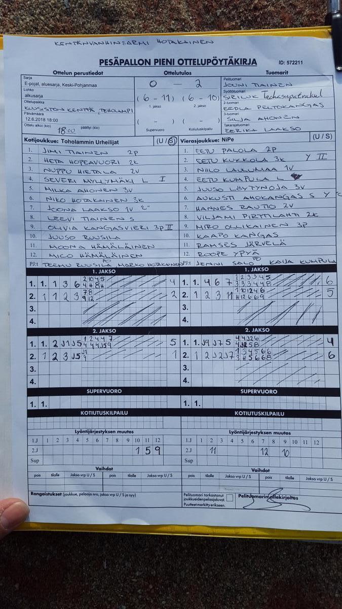 | 12.6.2018 | Toholammin Urheilijat | NiPe | 0-2 (6-11, 6-10) | näytä | |