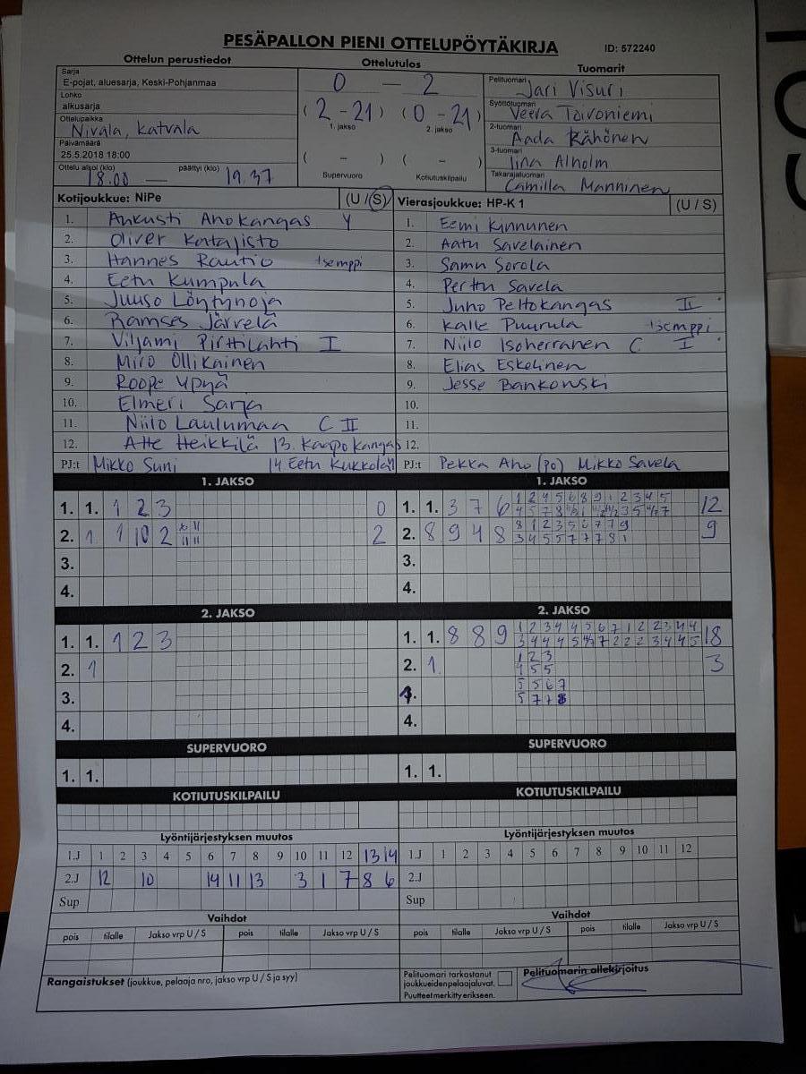 | 25.5.2018 | NiPe | HP-K 1 | 0-2 (2-21, 0-21) | näytä | |