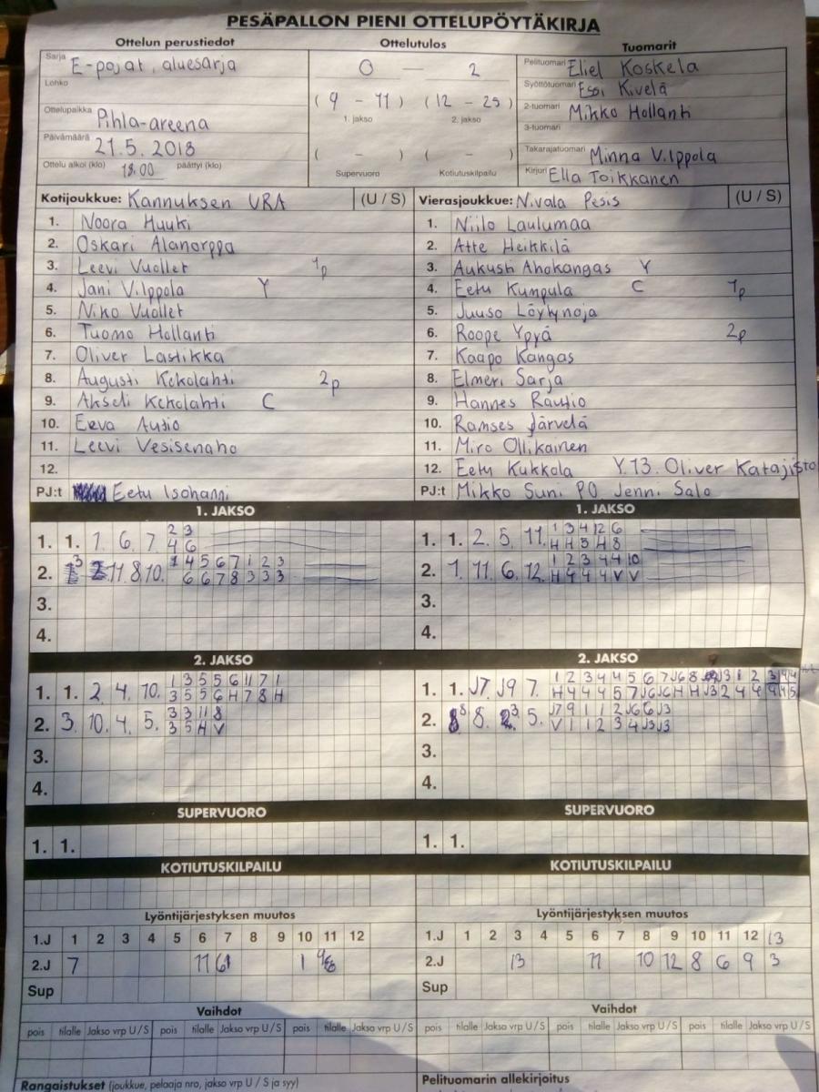 | 19.6.2018 | NiPe | YK E-07 | 2-0 (11-5, 13-5) | näytä | |