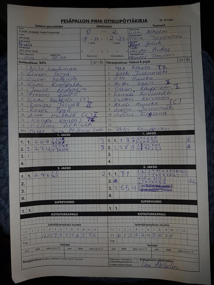 | 29.5.2018 | NiPe | Halsua E-pojat | 0-2 (8-12, 2-23) | näytä | |