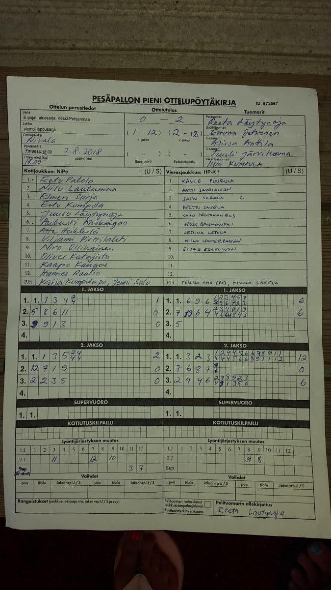 | 7.8.2018 | NiPe | HP-K 1 | 0-2 (1-12, 2-18) | näytä | |