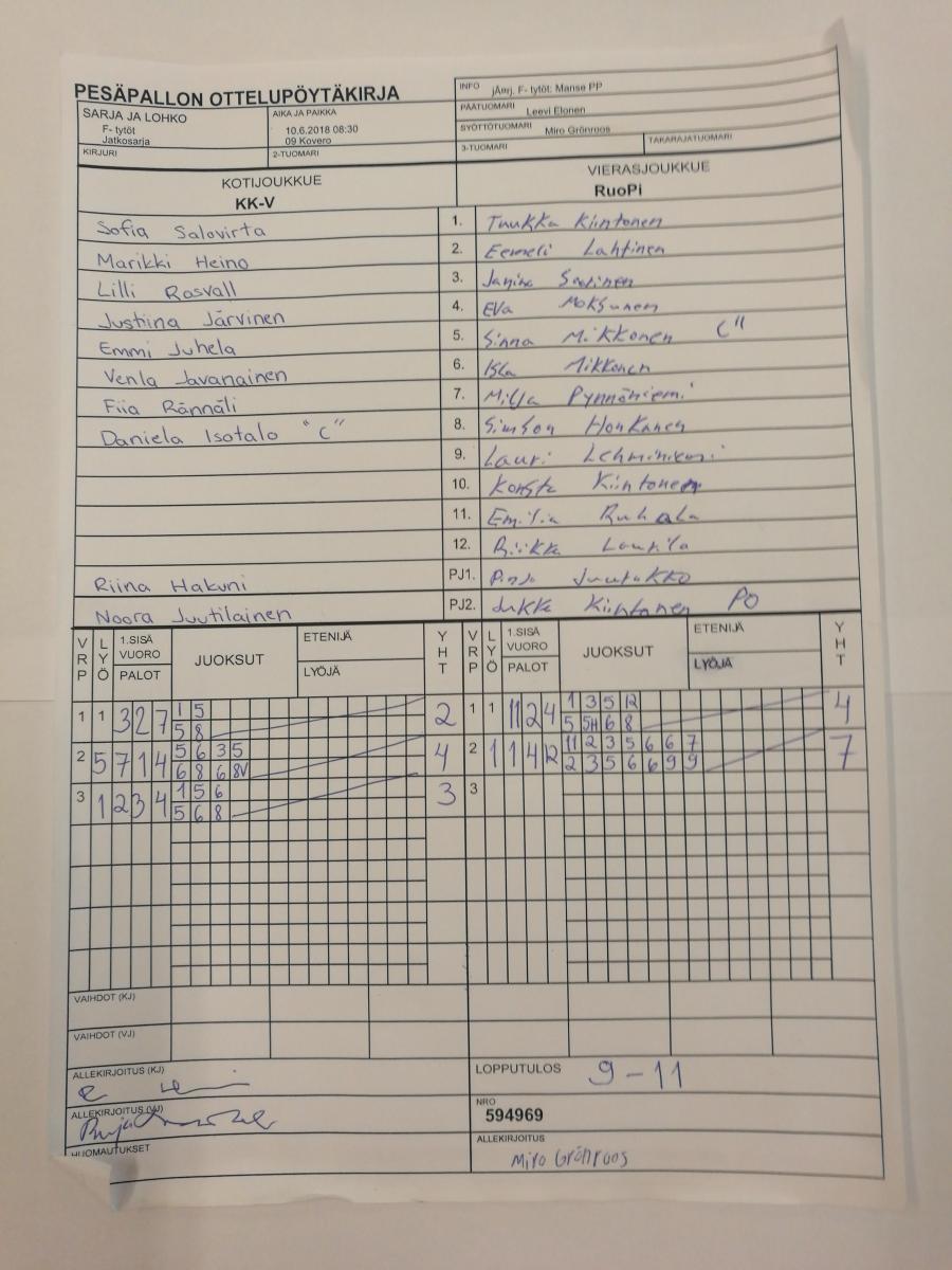 | 8.6.2018 18:00 | 09 Kovero | RuoPi | KK-V | 11-10 | näytä |