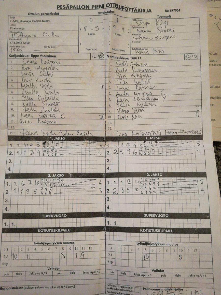 | 18.6.2018 | SiKi Ft | lippo ft-sininen | 2-1 (6-13, 10-3, 8-3) | näytä | |