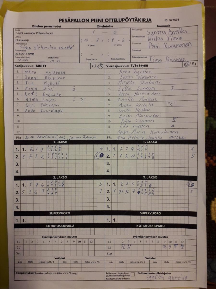 | 23.8.2018 | SiKi Ft | TyTe f-tytöt | 1-0 (10-8, 8-8) | näytä | |