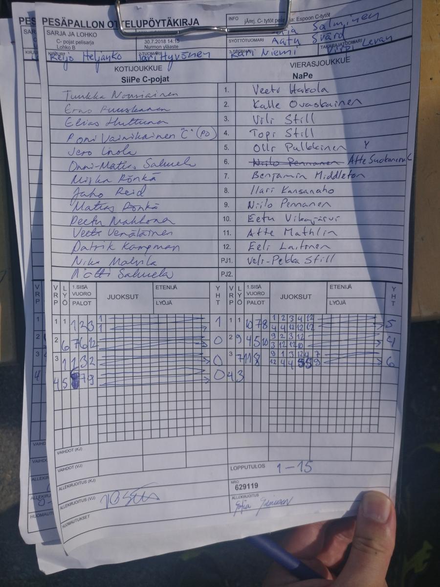 | C- pojat kilpasarja - Lohko A | 1.8.2018 14:15 | 4. Skaala-areena | Lippo Valkoinen | Manse PP | NaPe |