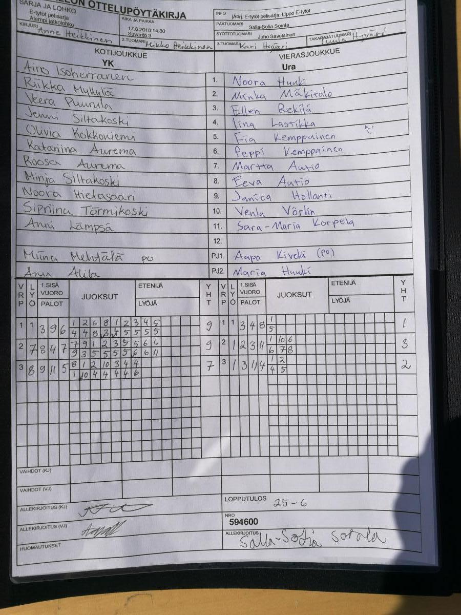 | Alempi jatkolohko | 16.6.2018 14:00 | Suvanto 3 | Ni-Pe | YK | Ura |