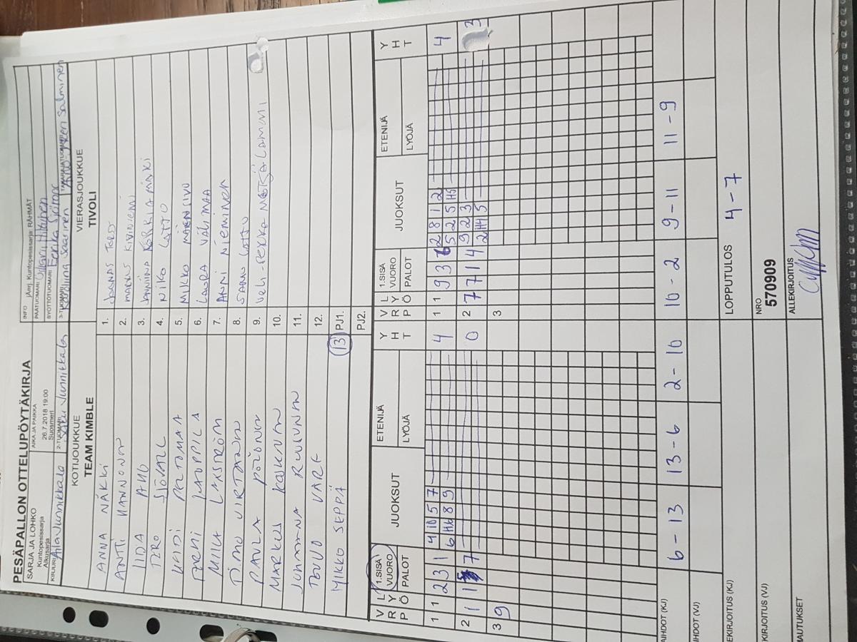 | Jatkolohko | 11.8.2018 13:00 | Erku-Areena | TEAM LUVATA | TEAM KIMBLE | TIVOLI |