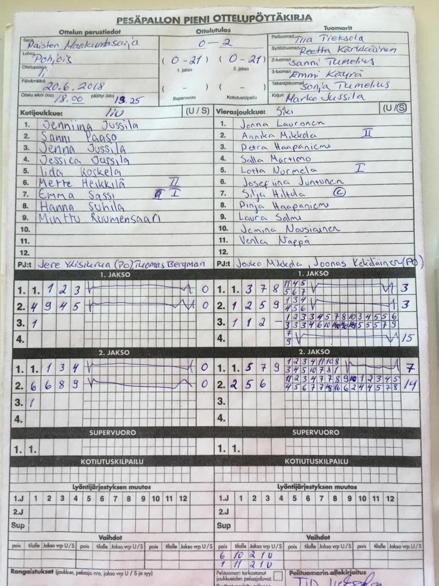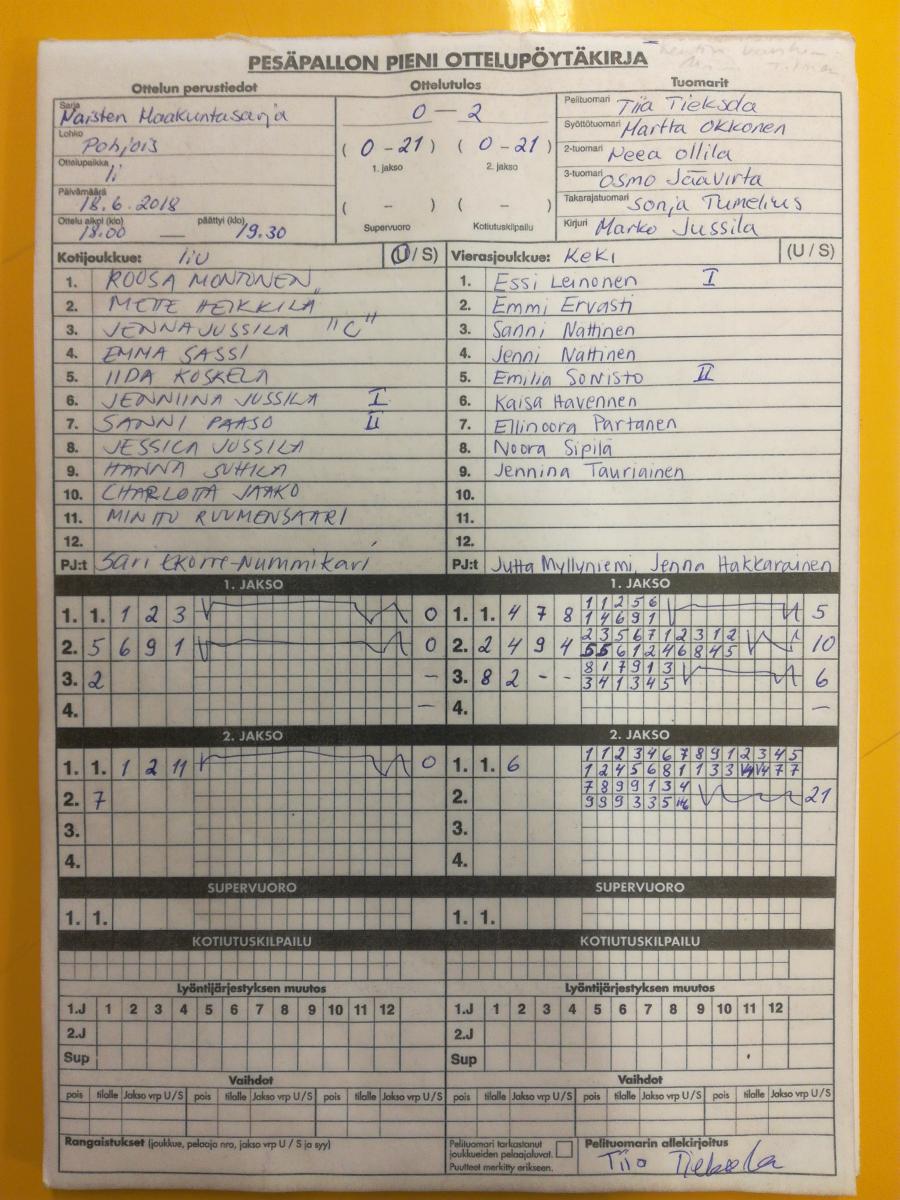 | 20.6.2018 | Ii | Simo | 0-2 (0-21, 0-21) | näytä | |