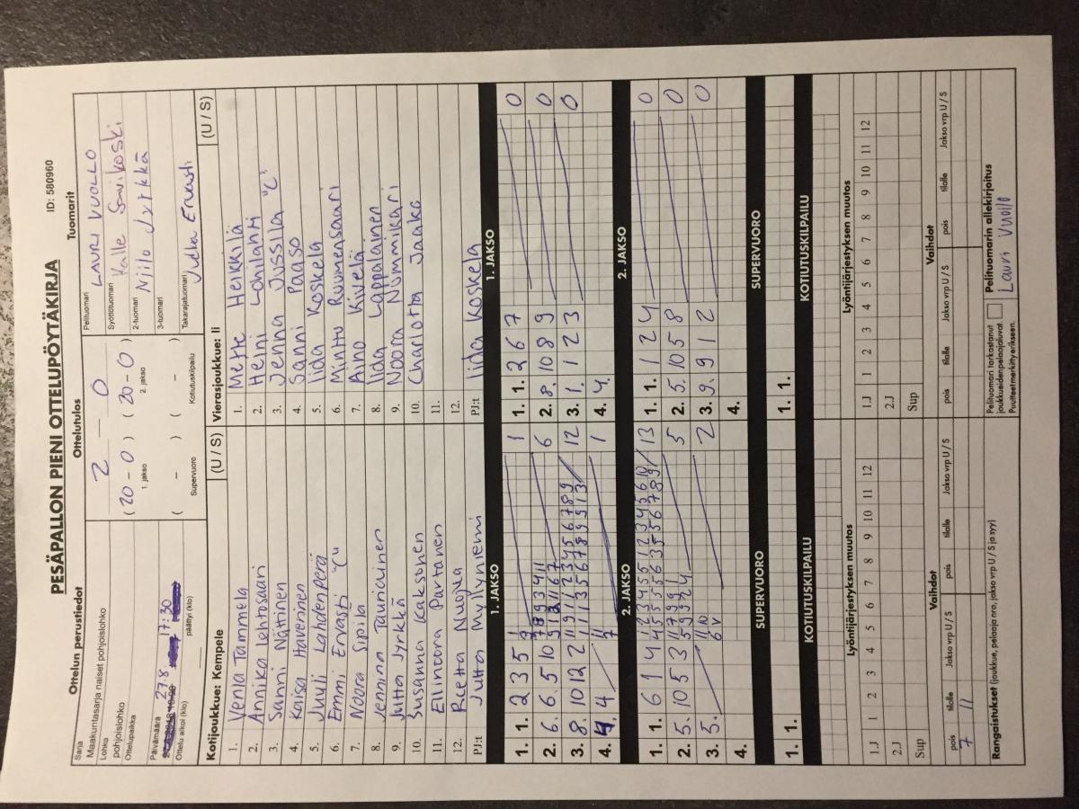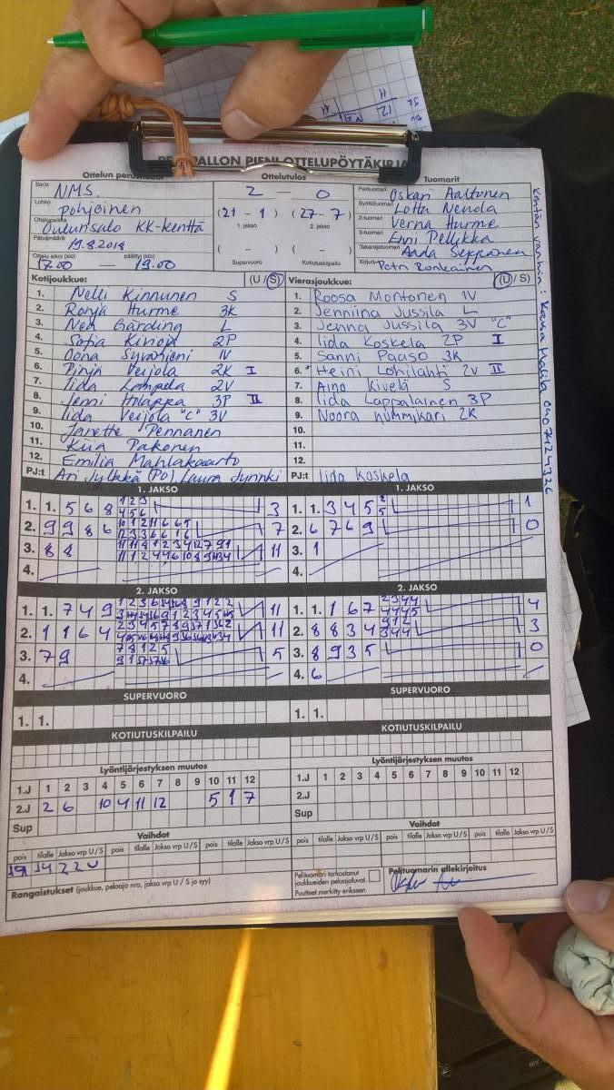 | 19.8.2018 | Oulunsalo 2 | Ii | 2-0 (21-1, 27-7) | näytä |
