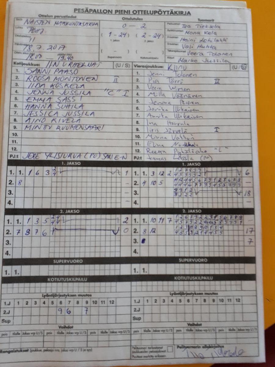 | 23.7.2018 | Kiiminki | Ii | 2-0 (22-1, 19-0) | näytä | |