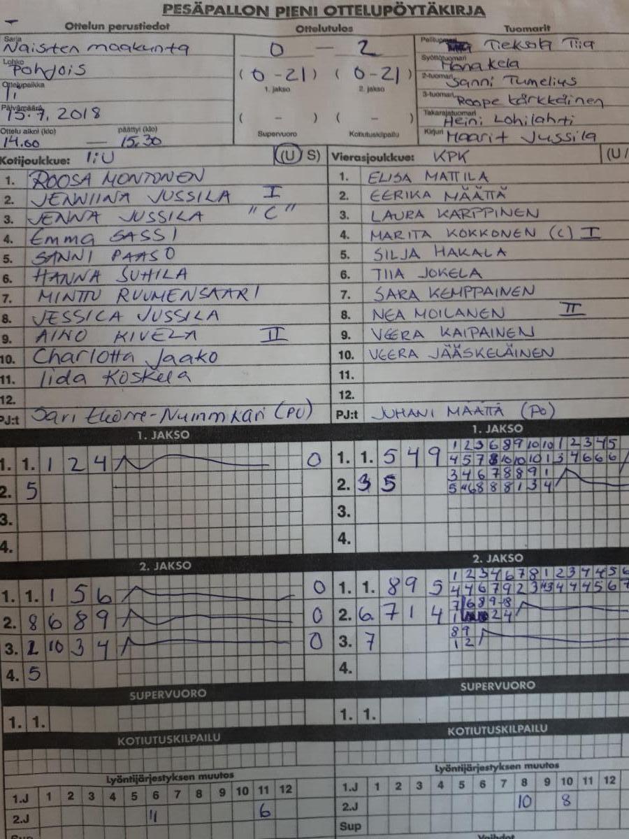 | 15.8.2018 | Ii | Kempele | 0-2 (0-21, 0-21) | näytä | |