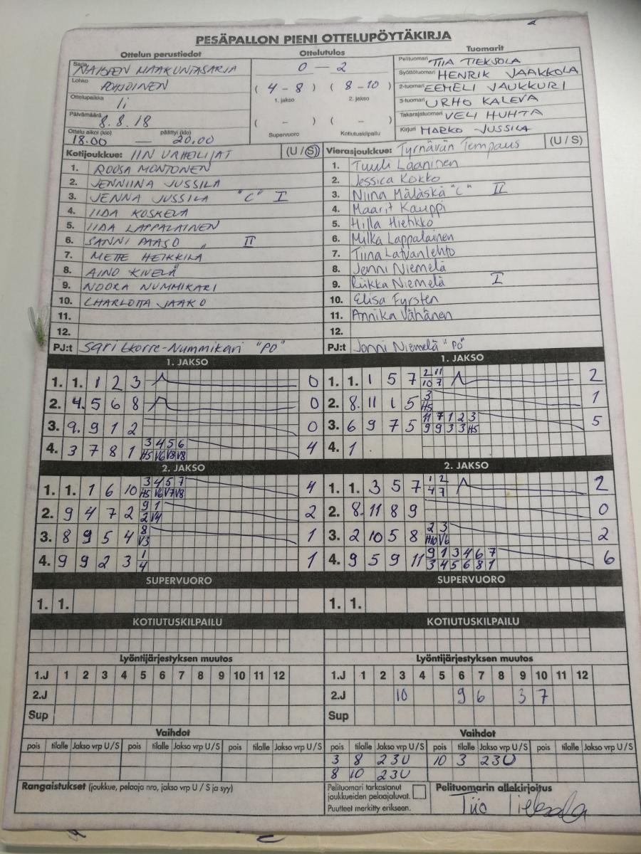 | 6.8.2018 | Ii | Oulunsalo 2 | 0-2 (1-20, 2-20) | näytä | |