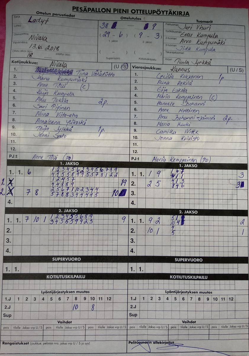 | 9.6.2018 | Nivala ladyt | Kannus ladyt | 2-0 (27-6, 9-3) | näytä | |