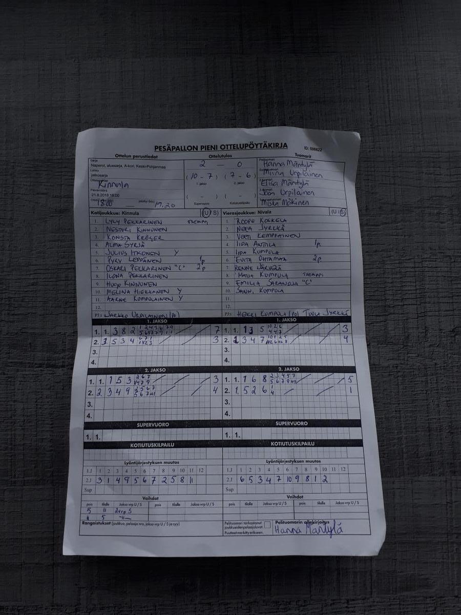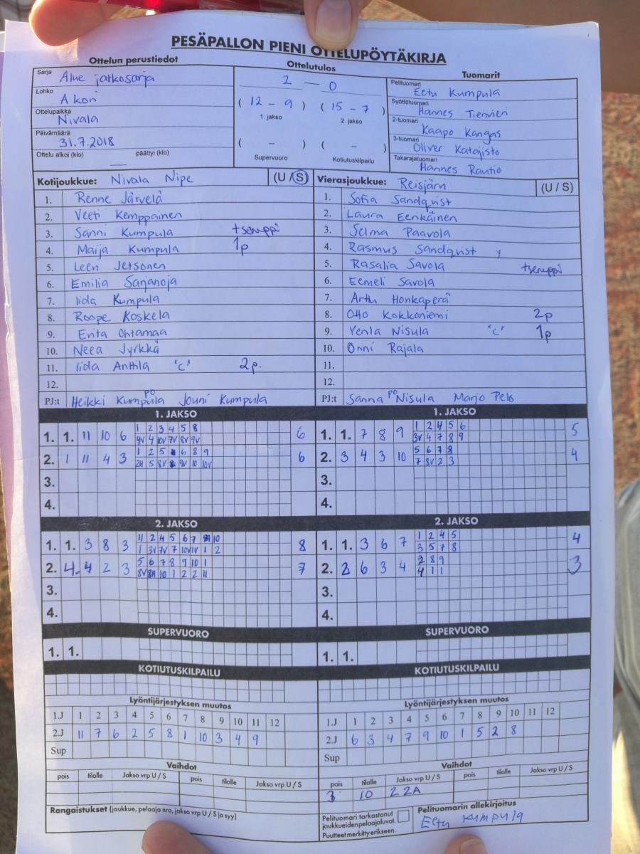 | 31.7.2018 | Nivala | Reisjärvi | 2-0 (12-9, 15-7) | näytä | |