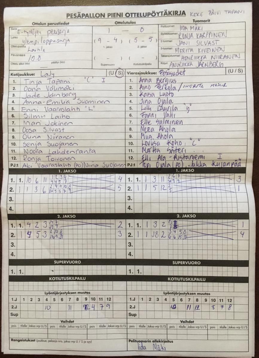| 31.8.2019 14:00 | MJ E-tytöt | LaJy E2 | 1-2 (5-8, 12-6, 0-3) | näytä |